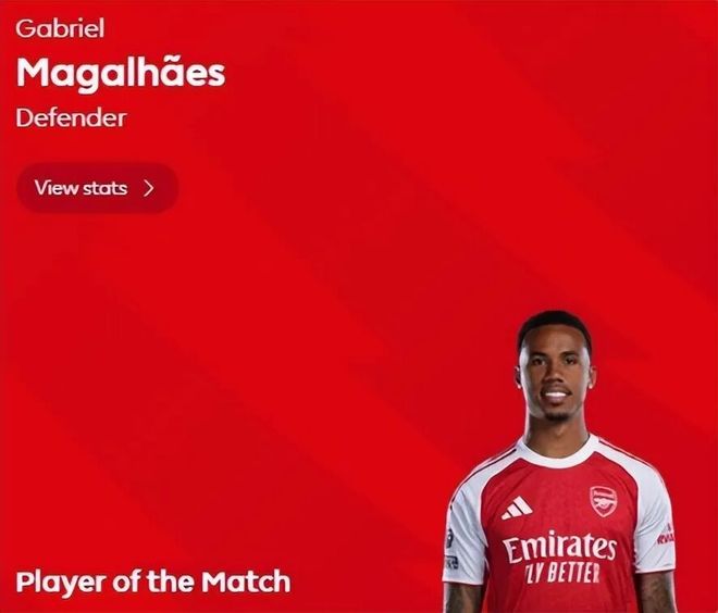 技术统计显示,拉亚本场贡献4次扑救,其中两次为禁区内扑救,当选队内最佳球员。加布里埃尔则凭借一次助攻和全场稳健的发挥,被英超官方评为全场最佳。